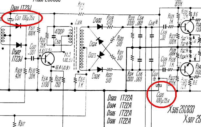 電源基板: C602 (220uF/50V) → 330uF/50V に交換。