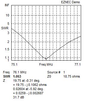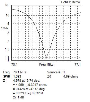 給電インピーダンスを低くすれば狭帯域化ができるのが分かったため、前回は19Ωの2エレを製作。