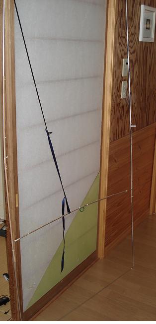 凧用に買っておいた竹籤?を使って支持用とした。まずは仮止めだらけだが、どのくらいなのかを試験。